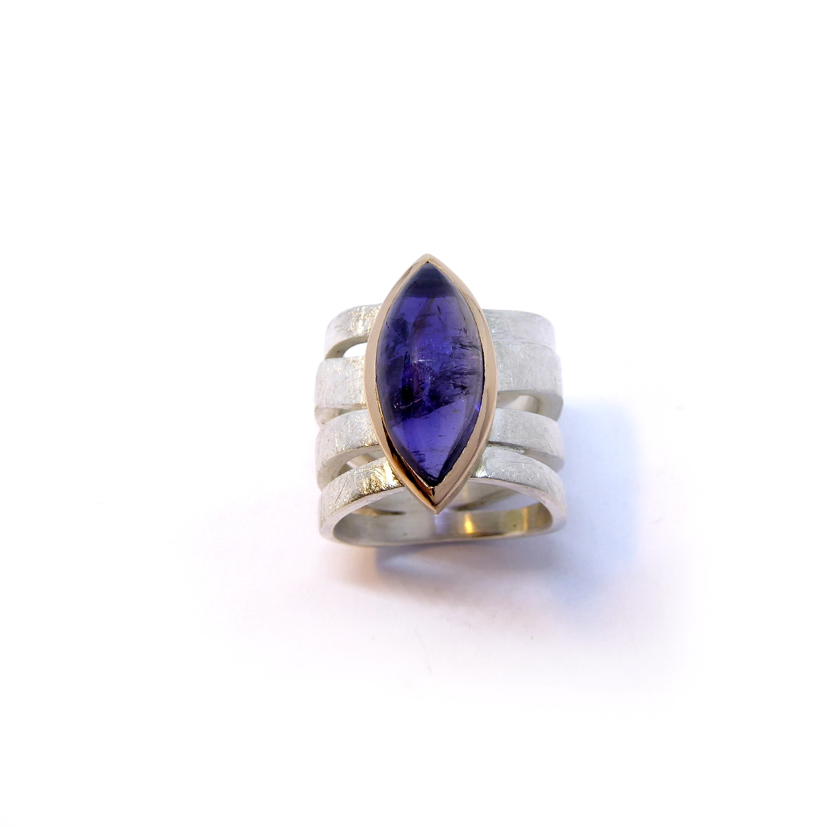 Strickring „New Jersey“ mit Labradorit, Silber, 750/000 gold