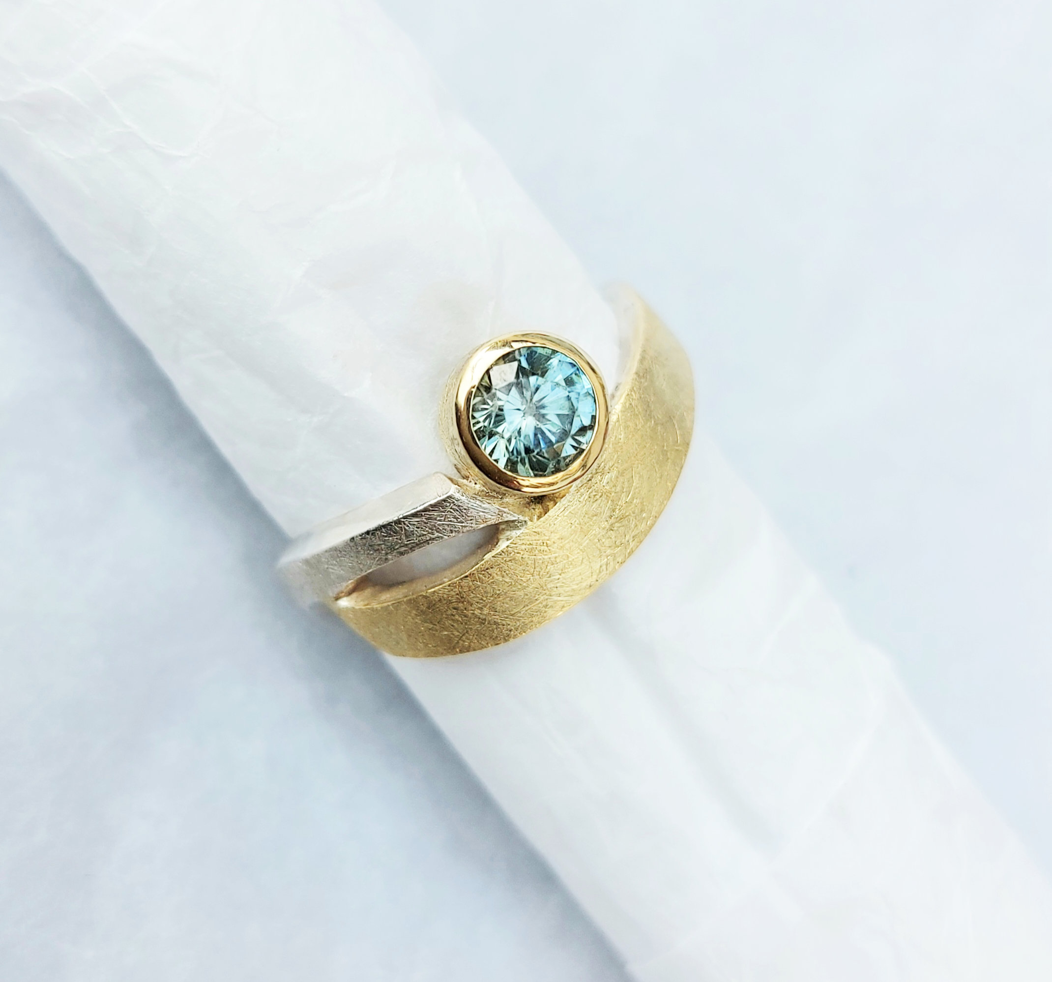 Strickring „New Jersey“ Silber, Gold, Mondstein
