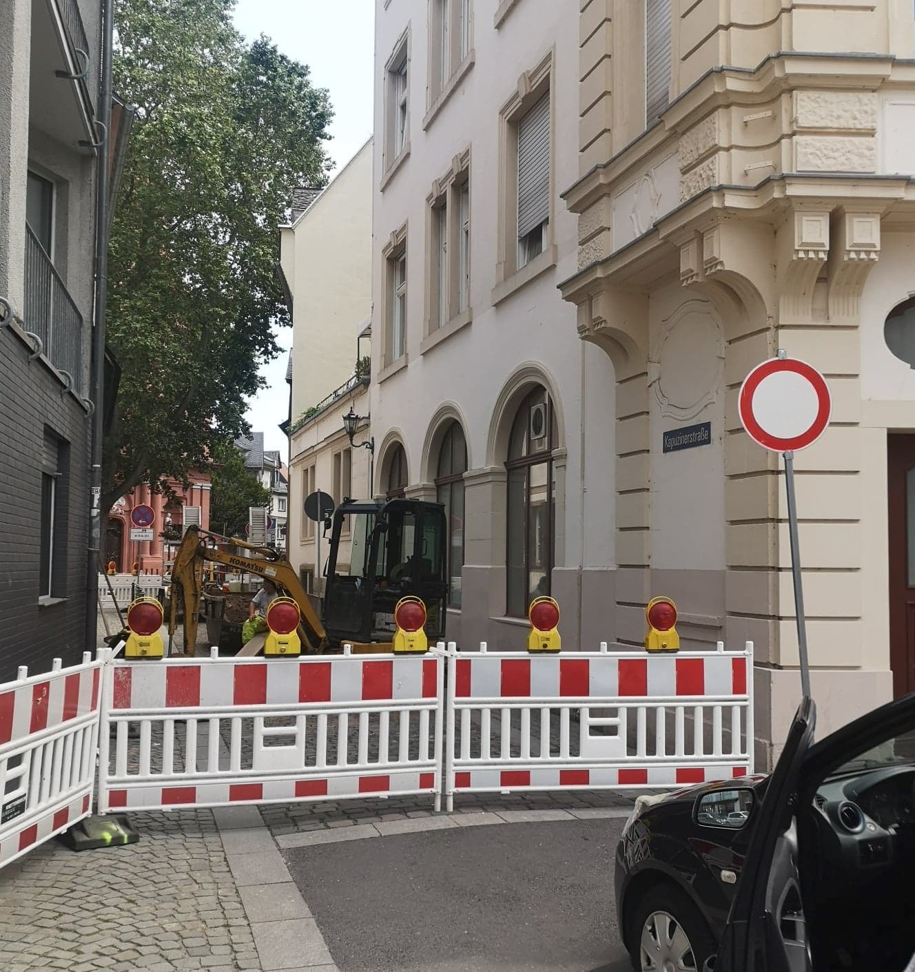 Der Kran steht, die Kapuzinerstrasse ist zur Innenstadt hin wie erwartet noch immer (planmäßig bis 8. Oktober) für KFZ gesperrt. Fußgänger und Radfahrer können grundsätzlich passieren. Nur wenn der Kran bewegt wird, ist auch der schmale Durchgang für jeweils 10-20 Minuten gesperrt. Nach 17 Uhr und Samstags war bisher kein Kranbetrieb.